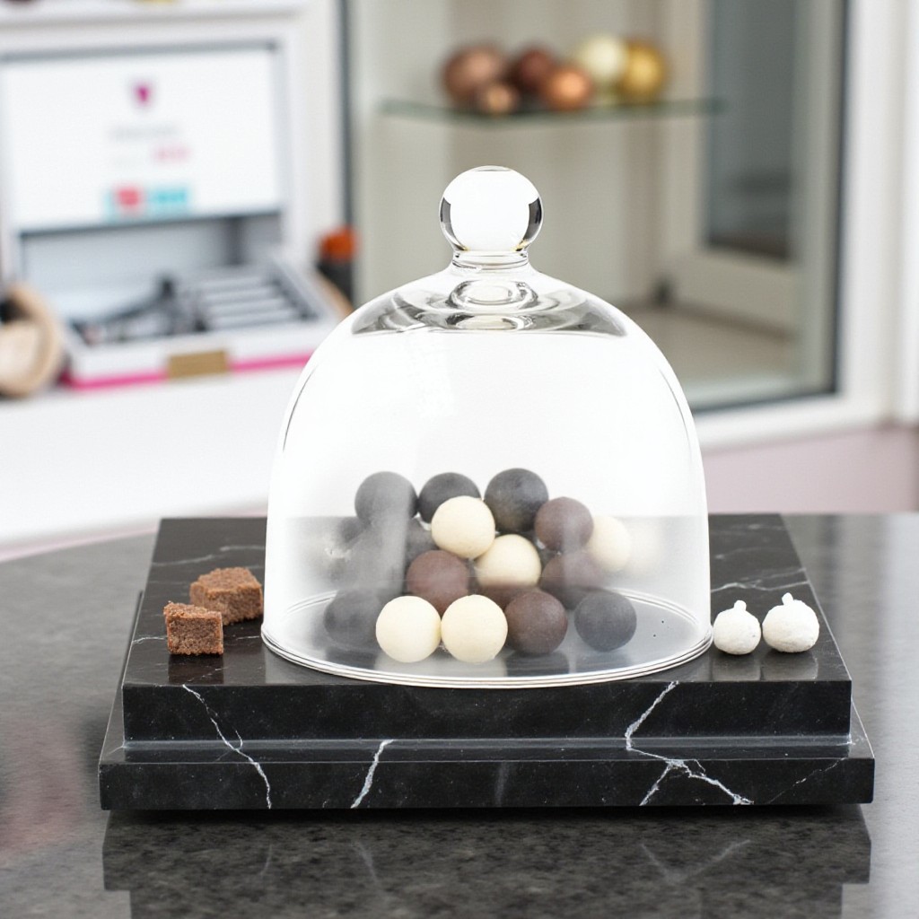 o Elegant glass dome with versatile uses, e.g., for covering and stylishly presenting chocolates, charcuterie and cheese platters, pastries, plants, figurines, candles, etc.