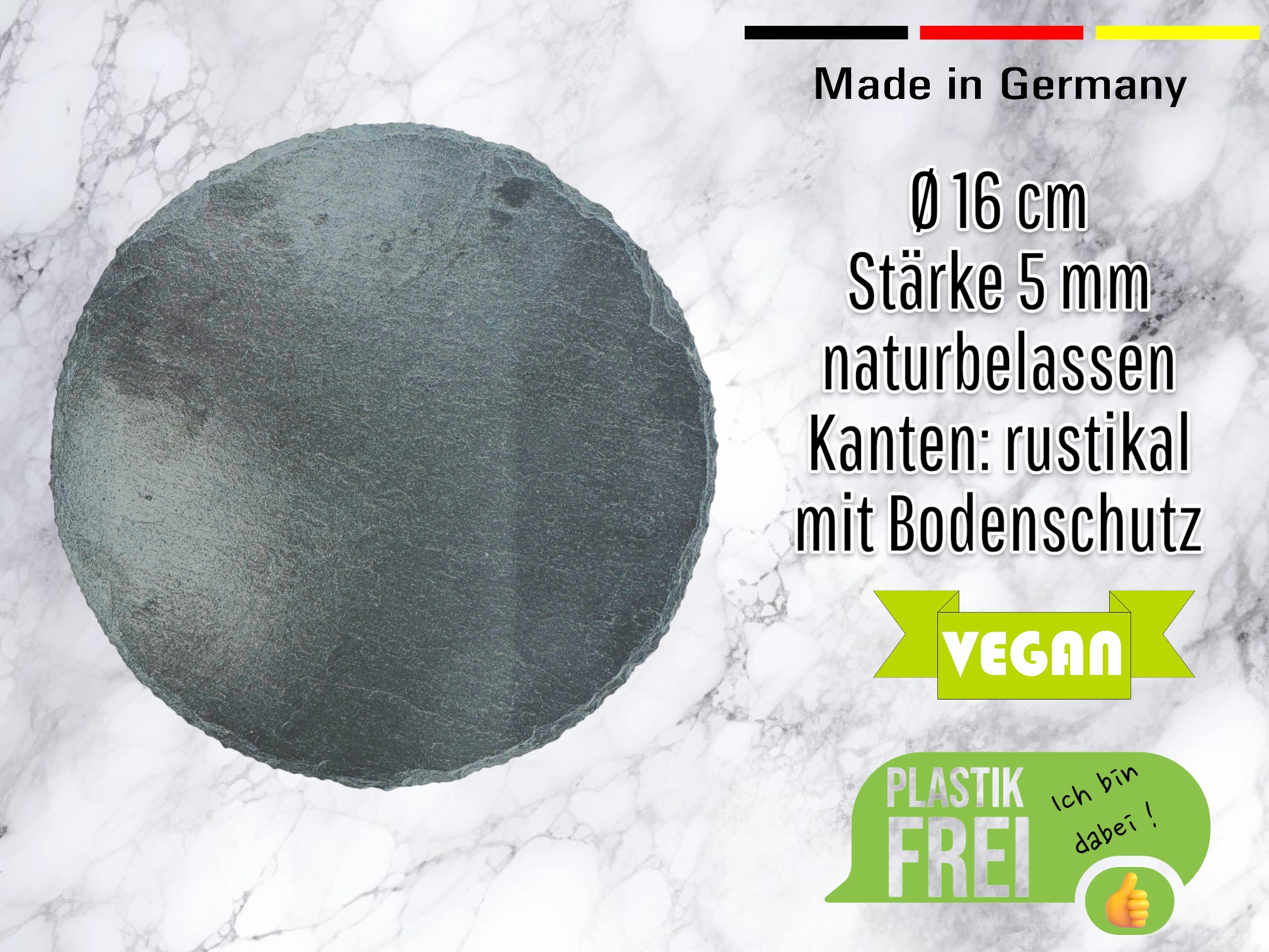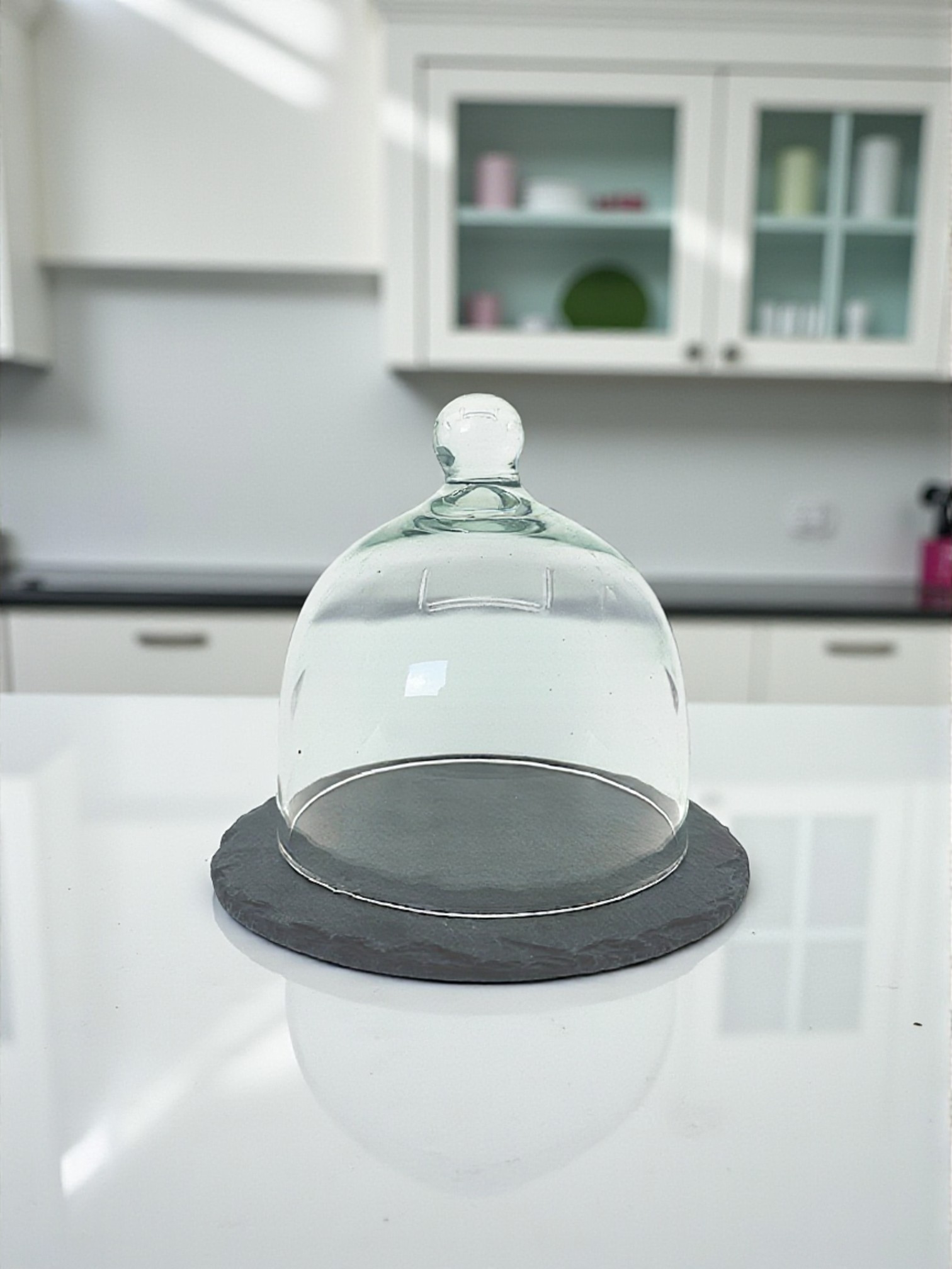 Set Schieferplatte Ø 16cm & Glasglocke mini mundgeblasen